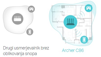 Izboljšana pokritost Wi-Fi - tehnologija Beamforming in šest zunanjih anten zagotavljajo visoko učinkovito brezžično povezavo.